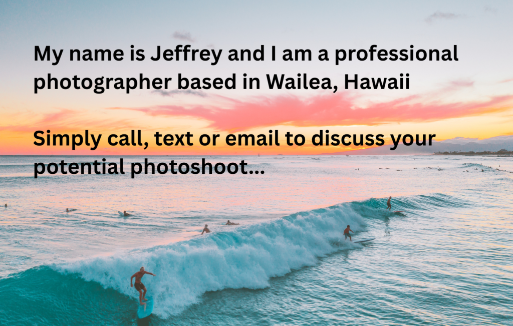 My approach to the art of portrait photography is patience, creativity and wonder. I am hired to capture the miracle of you and your loved ones together in one of the most beautiful places on earth here in Maui.